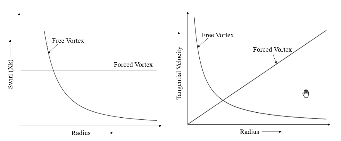- Forced Vortex - forced vortex in which the fluid angular velocity about the engine centerline remains constant through the vortex.