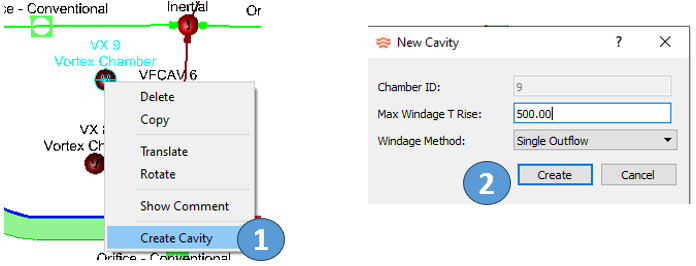 - Right-click on a vortex chamber or inertial chamber (a cavity cannot be