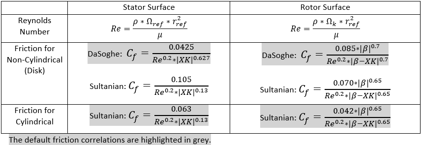 local cavity surface friction option specified. -1: User Specified Friction Factor 0: Use default friction correlations 5: Disk Friction Factor from Dasoghe reference 11: Disk Friction Factor from Sultanian reference 12: Cylinder Friction Factor from Sultanian reference >1000: Custom friction factor correlation |