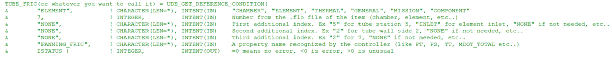 GET_UDE_BOUNDARY_CONDITION This function returns flow element upstream and downstream boundary conditions such as PTS, PSEB, THETA_INLET, PHI_EXIT, etc. It returns a double precision number. These are usually used for the flow calculation. Typical BC_ID: UDE_PTS, UDE_TTS, UDE_PSEB, UDE_RELANGL, UDE_THETA_INLET, UDE_PHI_INLET, UDE_THETA_EXIT, UDE_PHI_EXIT