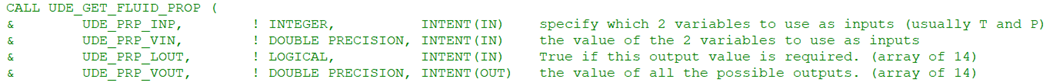 GET_UDE_FLUID_PROPERTY Function returns flow element fluid properties at the upstream, downstream and an average. It returns a double precision number. These may or may not be needed for the flow calculation.