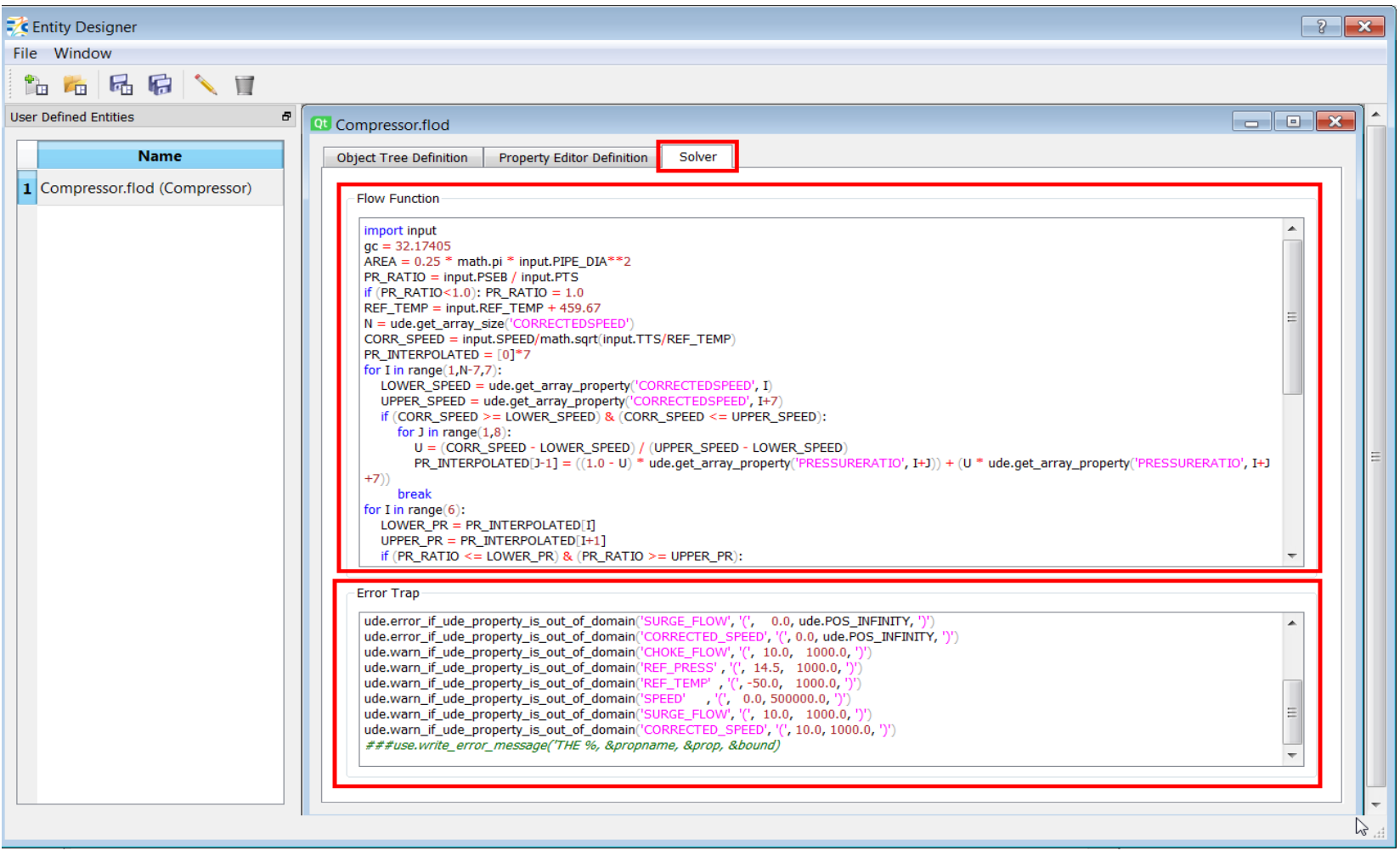 • For Python User interface, it has two different panels, one for Flow Function which is the solver routine for user defined element, & the other panel is to setup the error traps for the solution routine.