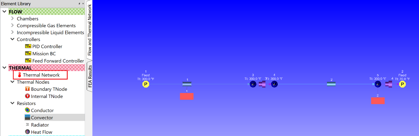 - Drag-and-drop thermal nodes and thermal resistor elements to form the Thermal Network. The procedure explained in the previous section can be followed.