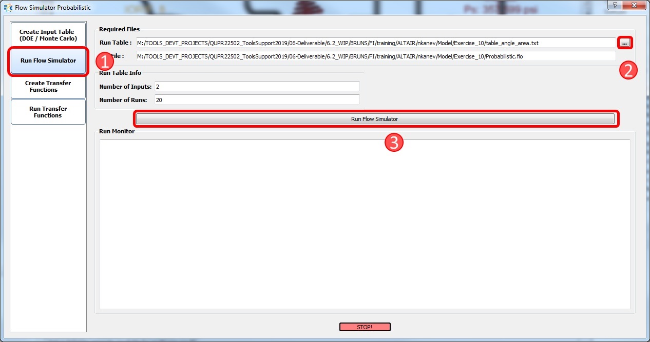 - Click “Run Transfer Functions” in the Flow Simulator Probabilistic Window