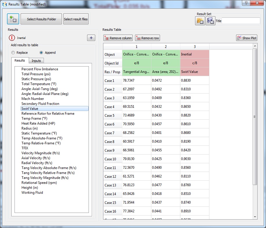 Figure 1.07:Results Table showing Tangential Angle and Swirl Value