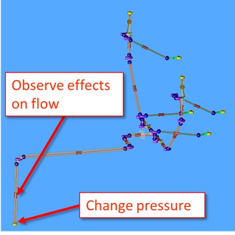 - The user will start with the existing water piping model and set up a multicase run to investigate the effects on flow caused by changes in pressure of an upstream chamber