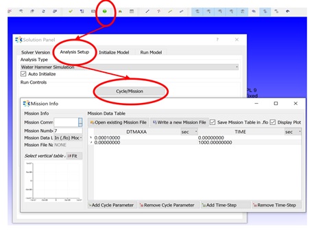 5. Define Mission table for the controller (RUN → Analysis Setup → Cycle/Mission)
