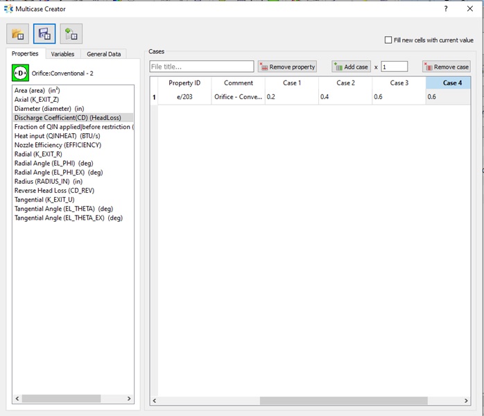 - In this section a multicase will be created using MultiCase Creator Tool with 4 case where in each case Cd values of the orifice element will be varied (0.2, 0.4, 0.6 & 0.8).