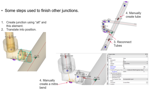 - Use CAD to make most of the tubes and bends. The junctions are made manually. The elements around the junctions must be reconnected to the junctions.