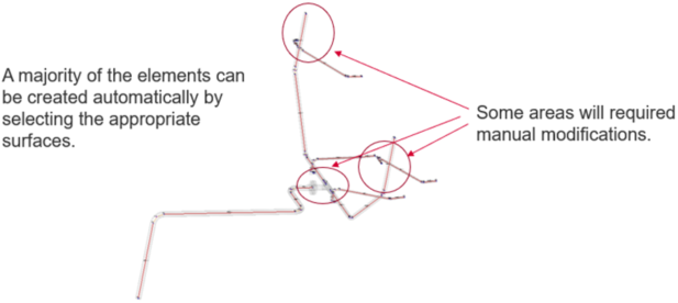 - Create tube and bend elements using the CAD geometry. Most of the tubes and bends