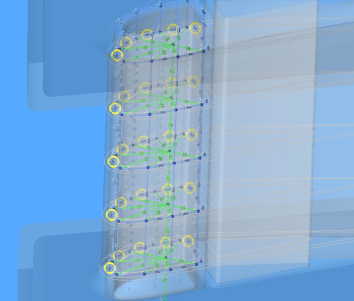- Connect the momentum chambers between the baffle and the LE walls with Standard tubes. The direction of these tubes is hard to predict, but the Flow Simulator solver is able to reverse the flow direction if needed. You can create the tubes in the direction shown in Figure 1.04 or you can use your own directions.