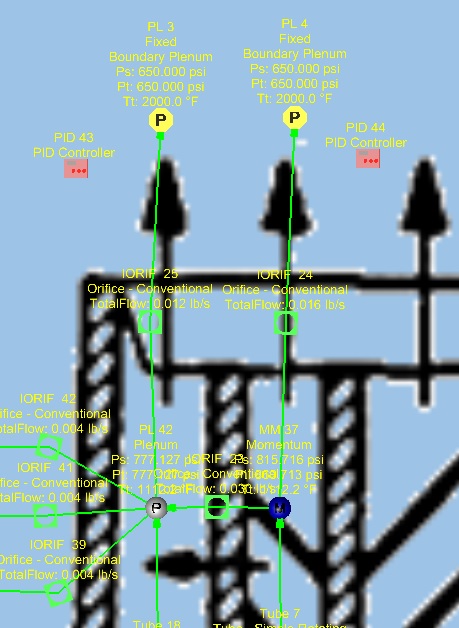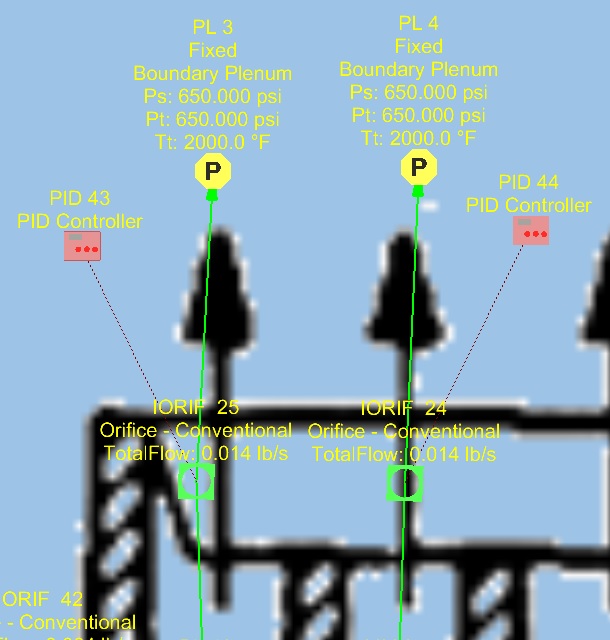 controller elements to the two flow elements representing the tip cap holes. The PID