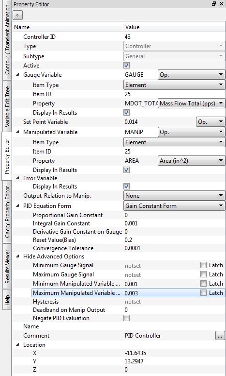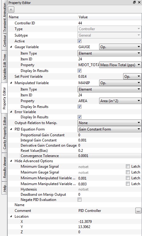 - Set Gauge Variable → Set Point Variable to 0.014 (this is the flow rate that the controller will try to achieve)