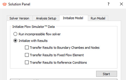 1. Added ability to initialize a model using the chamber information from a results file (*.res). The pressure and temperature of internal chambers will be set from the results file. Optional capability to transfer results to the boundary chambers, fixed flow elements, and reference conditions (rotor speeds and cycle flow).