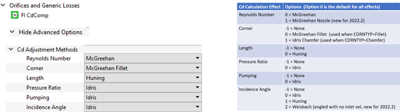 - The Cdcomp element calculates a discharge coefficient (Cd) based on