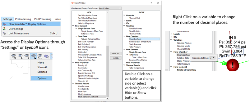 - The Display Options window controls the text displayed in the modeling