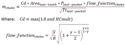 rate from a choked flow calculation over the last tooth. The