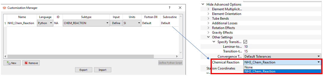 Figure 7. Controller and FMU Multi-Edit - Chemical Reaction Option for Incompressible Tube Element (BETA)