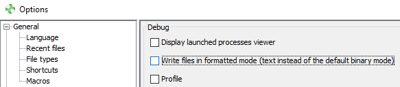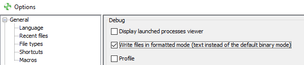 Cliquer sur Debug et cocher la case Ecrire les fichiers en mode formaté: