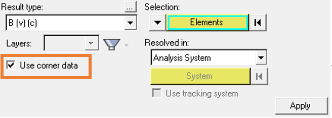 • In order to view the results computed by Flux on nodes, Use corner data option must be checked: