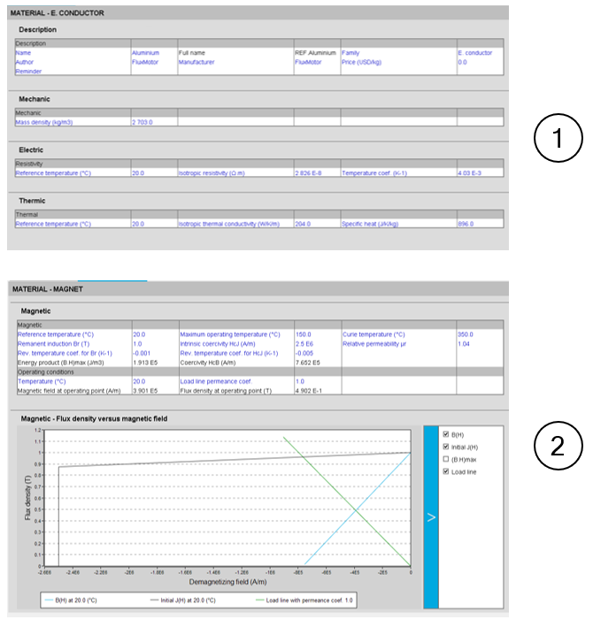 In this area all the physical properties of the material will be shown including the inputs variables, and also the physical properties deduced from the inputs and curves describing the material behavior.