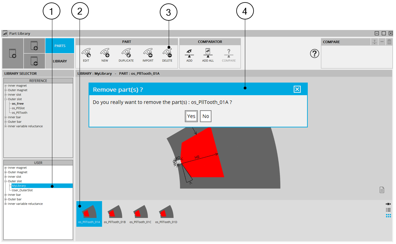 2 | Select the part to delete (several parts can be selected to be deleted). |