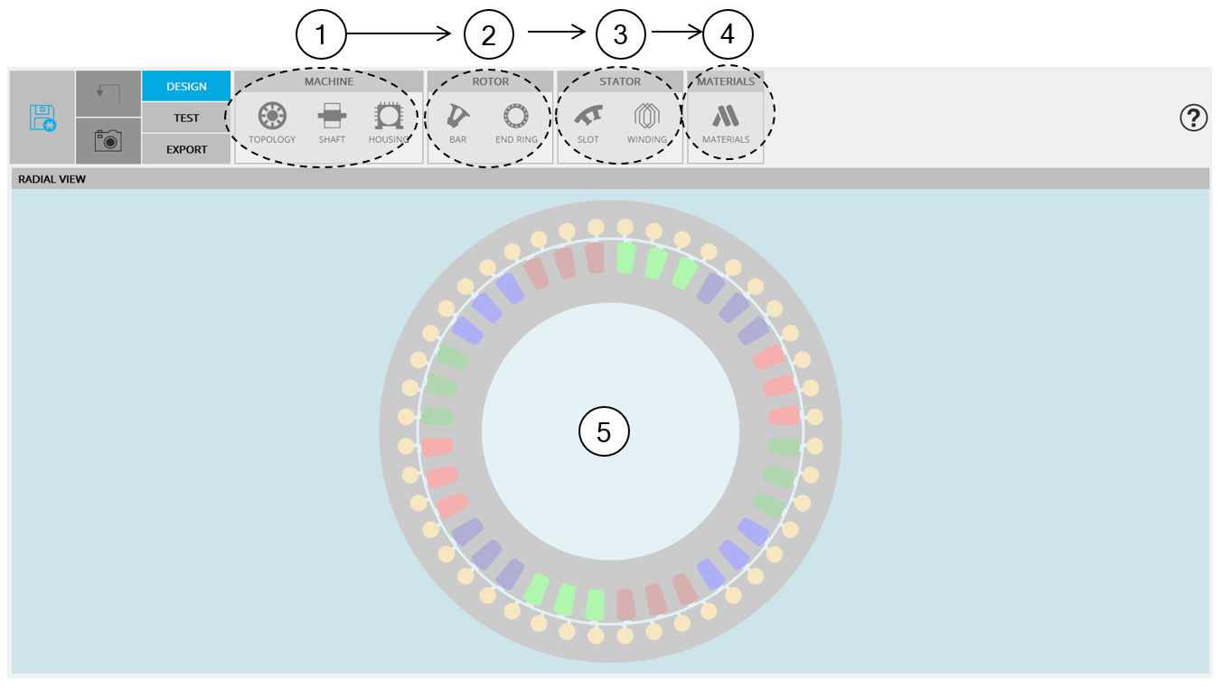 Zone 5 VIEW | Visualization of the motor radial view. The winding (automatically