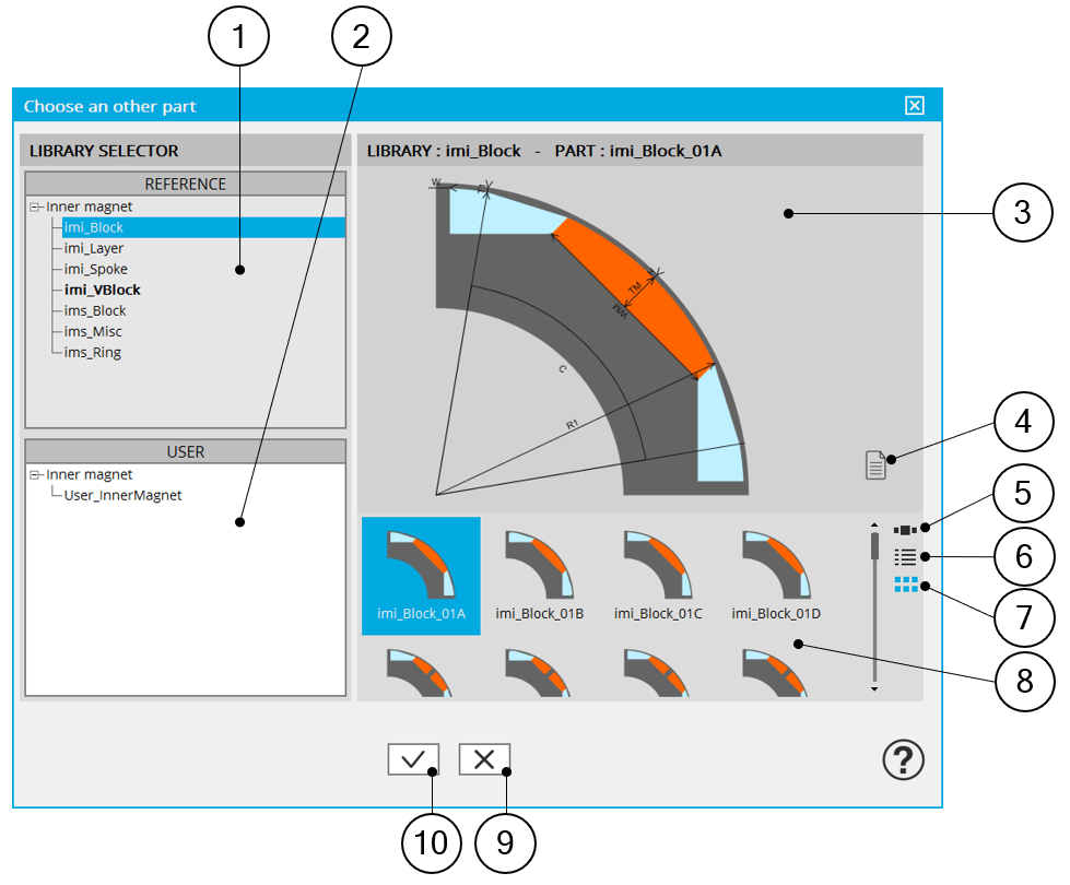 10 | Button to choose and import the selected magnet to modify the current rotor design. |