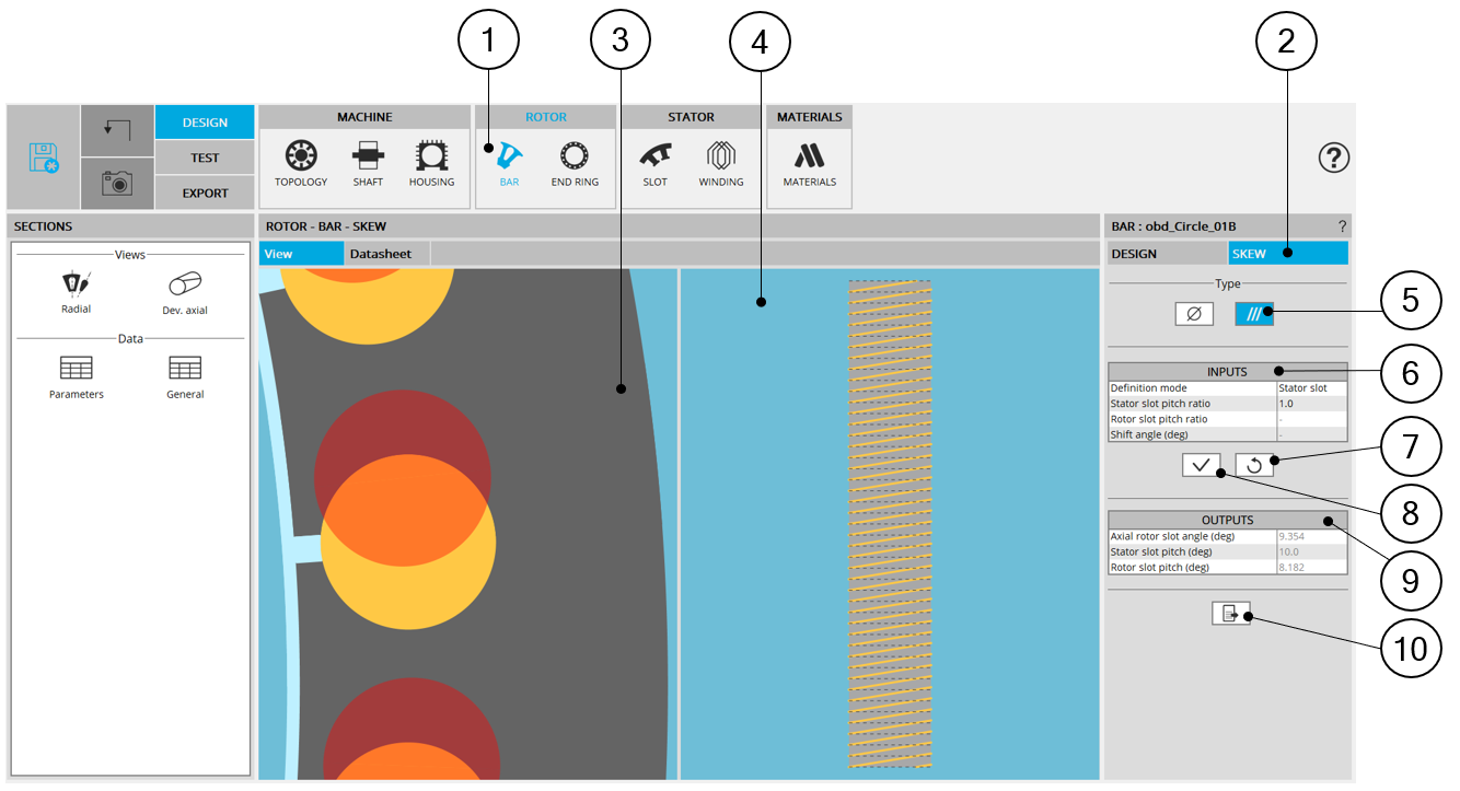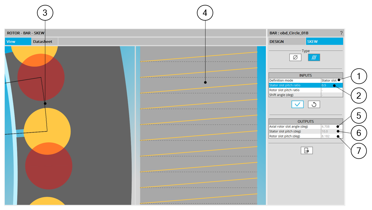 3 | Visualization of the chosen skew angle on the machine radial view |