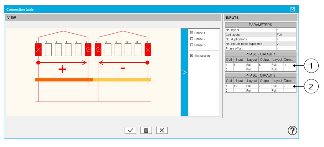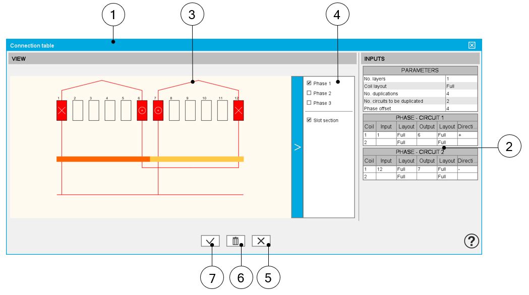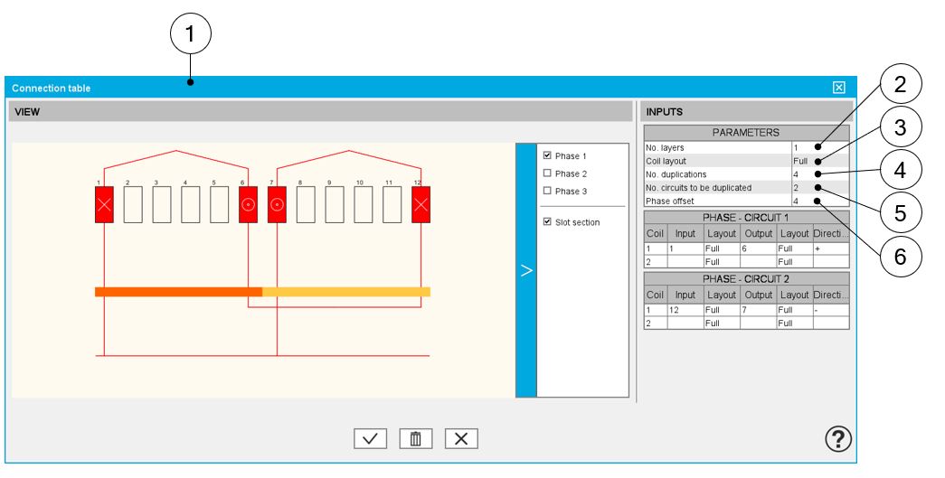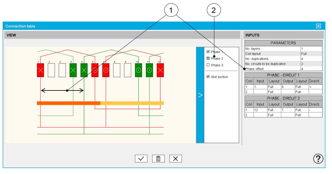 Building the winding architecture – Filling of the connection table – Phase offset | |