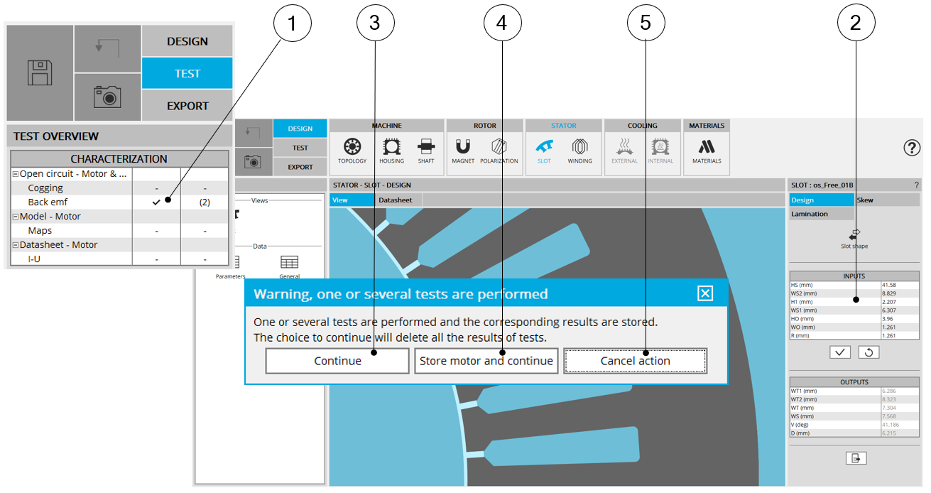 Store motor and continue ” allows the user to first store the current motor and then continue the design on the current motor.