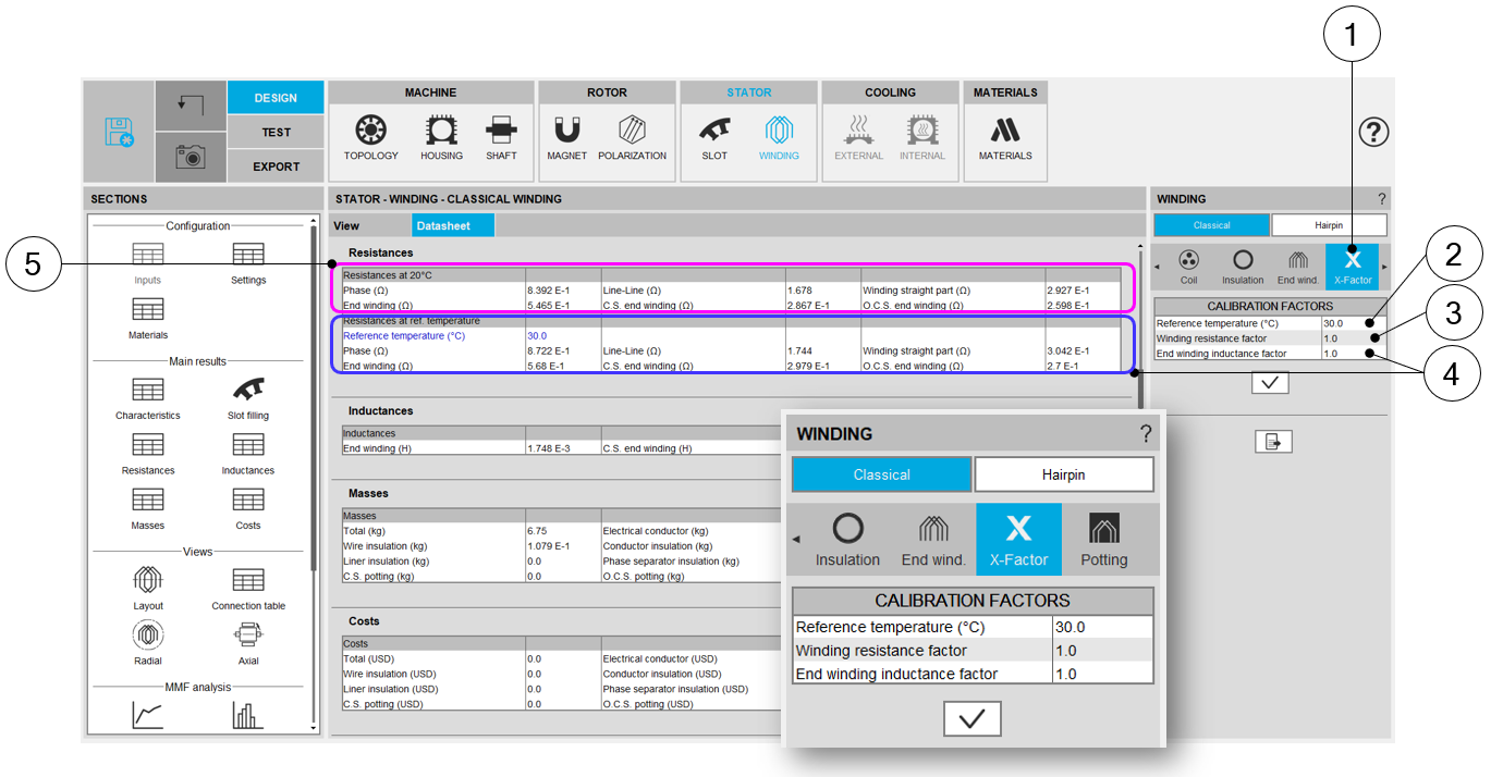 3 | Setting of the “Inductance factor”. It allows modifying the computation