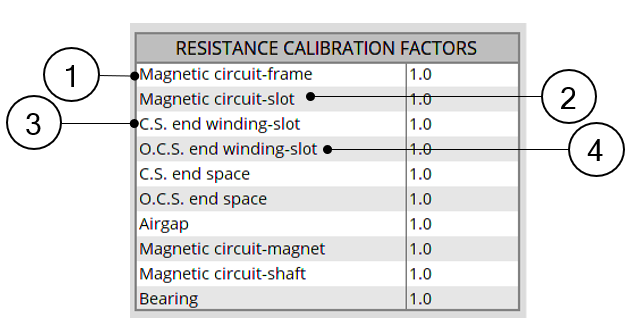For every existing magnet, this calibration factor tunes the total resistance existing between this magnet and every component of the rotor magnetic circuit around it. Each of these resistances are composed of three resistances: