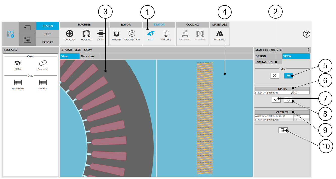 3 | Visualization of the machine radial view to visualize the slot skew. |