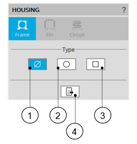 1 | Default setting : Housing type is « None » The machine has no frame. |