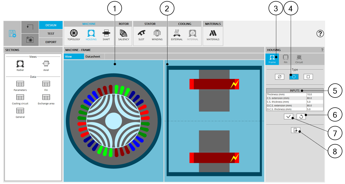 1 | Radial view of the motor, including the housing topology and dimensions. |
