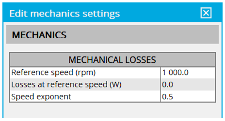 User inputs for defining the mechanical losses |