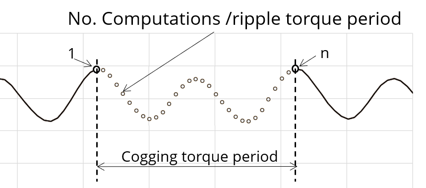 The user input “ No. comp. / ripple period ” (Number of computations per ripple torque period) influences the accuracy of results (computation of the peak-peak ripple torque) and the computation time.