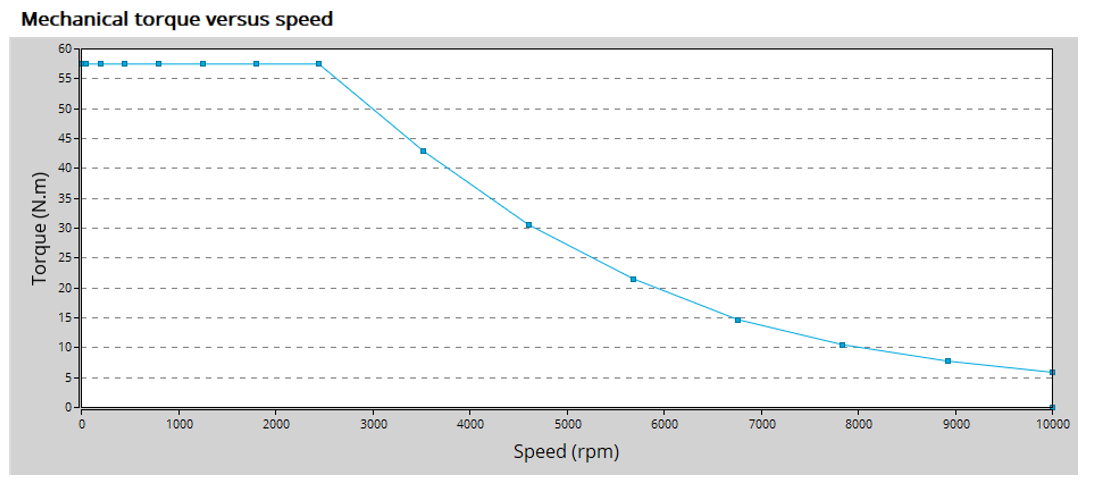 In the results, the performance of the machine at the base point (base speed point) and for the maximum speed set by the user are presented.