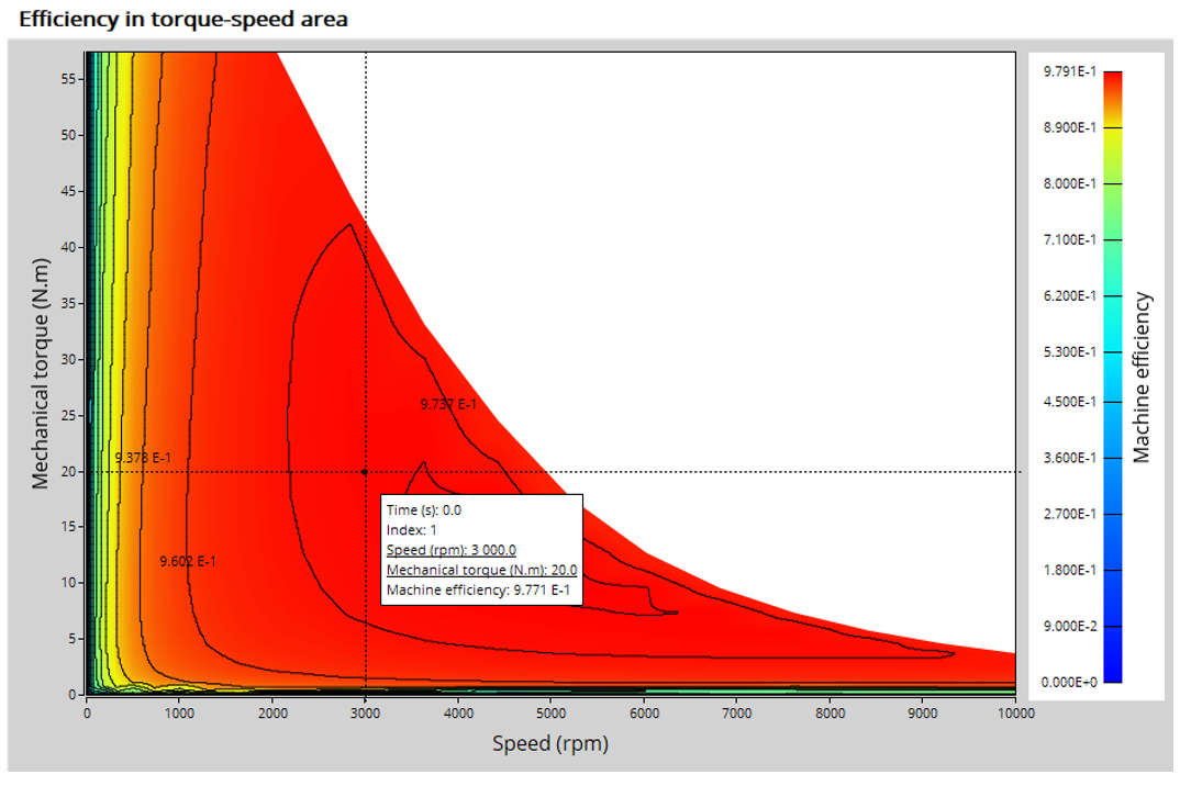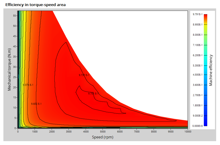 - Losses in torque-speed area (Total, Joule, Iron, Mechanical and additional) in the torque-speed plane