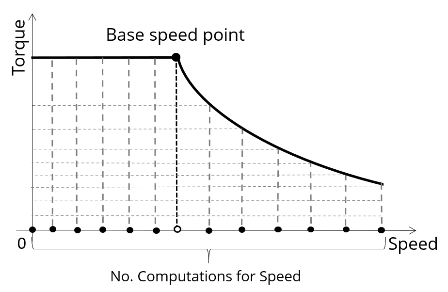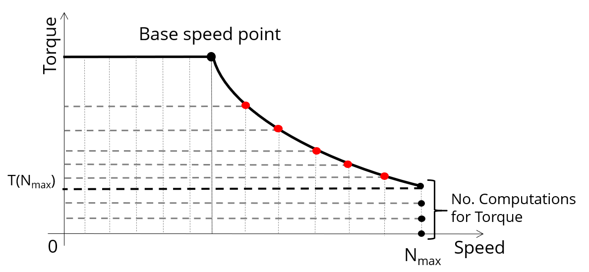 For the speed range [N base ; N max. ], the number of computations for torque is imposed by the number of computations for speed in the speed range [N base ; N max. ] (Red points in the image shown below).
