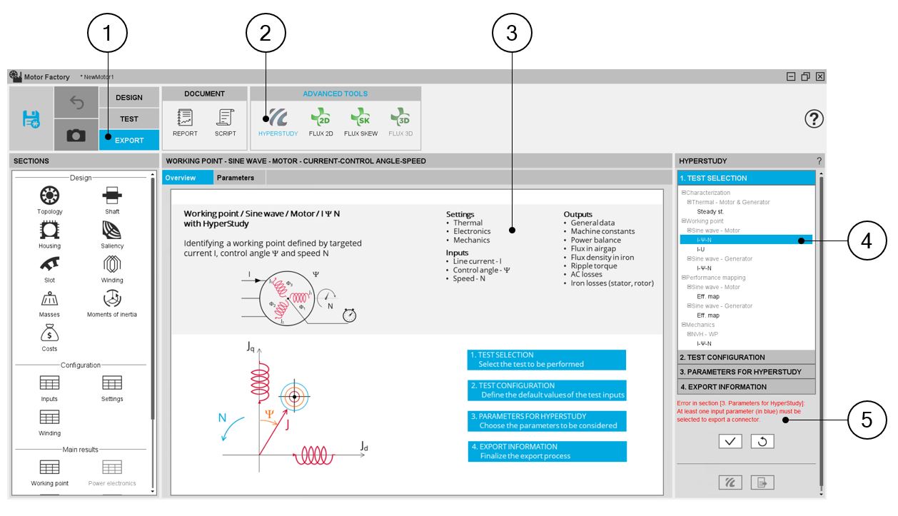 The aim of this export is to build a connector, allowing Altair® HyperStudy® to drive Altair® FluxMotor® for performing motor optimizations based on the computation processes embedded into FluxMotor®.