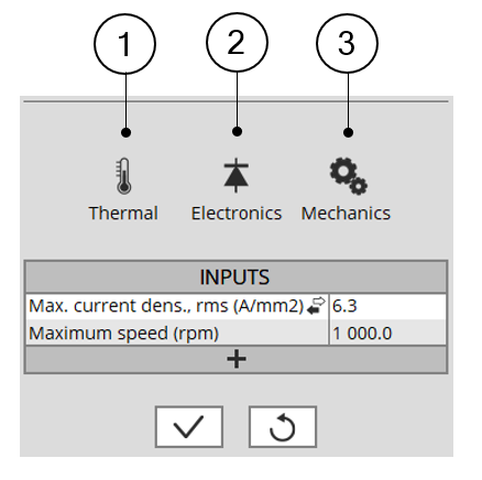 1 | Button to define the thermal inputs (Solving mode or active components temperatures) |