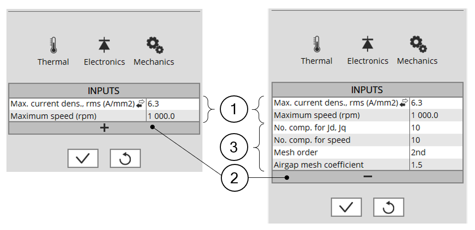 Advanced parameters show additional parameters which helps in fine tuning the computations in the software (through finite element modeling and simulation parameters) like the number of computations, Mesh order, Rotor initial position mode etc.