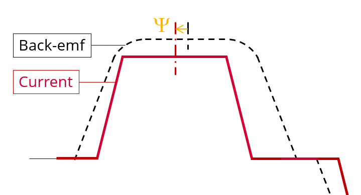 Considering the vector diagram shown below, the “ Control angle ” is the angle between the electromotive force E and the electrical phase current (J) (Ψ = (E, J)).