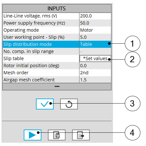 The rms value of the Line-Line voltage supplying the machine: “ Line-Line voltage, rms” ( Line-Line voltage, rms value ) must be provided.