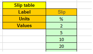 When “Table” is selected, the list of slips to be considered must be defined by using the next field: “Slip table” and by clicking on the button “Set values”.