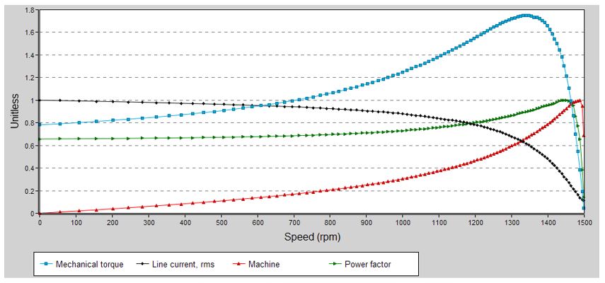 Note: Additional graphs provide an interesting overview on some topics such as, “Normalized base point curves”, “Normalized torque-speed curves” and “Voltage boost at low speed”. These results help the user to understand the possible performance of the machine in its electric environment.