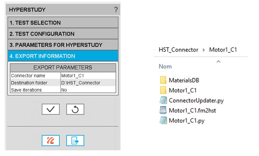 Generation of a connector for HyperStudy from Motor Factory Export- HyperStudy area. |
