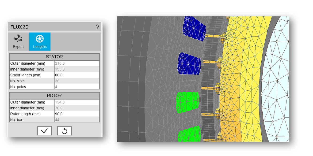 Export project to Flux 3D environment – The stator and the rotor can have different lengths |